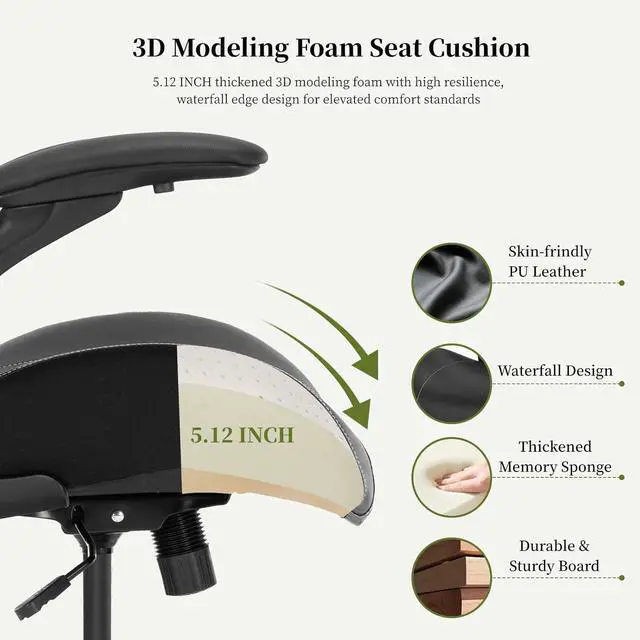 Breathable Mesh Backrest & 3D Modeling Foam Seat Cushion: The breathable mesh back allows air to circulate, providing cooling and comfort all day, helping you work and study more efficiently. 5.2 inches 3D modeling foam seat cushion with pu leather surface, soft and elastic enough, makes it sit for a long time without deformation; Arch bridge design, give your legs more support and reduce the stress of sitting, providing you with a comfortable sitting experience