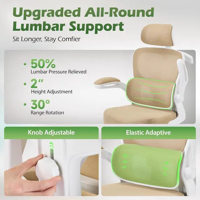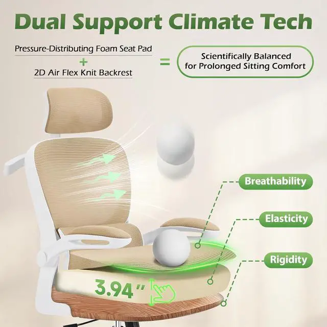 Breathable All-Day Comfort: Stay cool and focused thanks to advanced breathable mesh fabric promoting continuous airflow. Combined with a high-density, collapse-resistant foam seat cushion, this mesh office chair prevents overheating and discomfort, even during marathon workdays