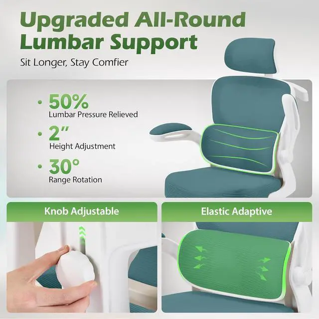 Breathable All-Day Comfort: Stay cool and focused thanks to advanced breathable mesh fabric promoting continuous airflow. Combined with a high-density, collapse-resistant foam seat cushion, this mesh office chair prevents overheating and discomfort, even during marathon workdays