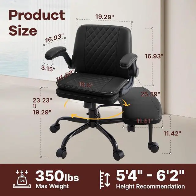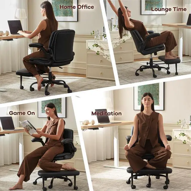 Smart Space-Saving & Next-Level Cozy: The extra-thick 360° swivel stretchable footrest and flip-up armrests work in harmony to stop numbness of the elbow and leg while saving space. Tuck the armrests of our rolling chair away to slide under desks, or extend the footrest of our leather chair for ultimate relaxation. Compact yet luxuriousideal for small offices, studios, or cozy home setups