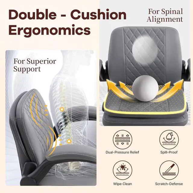 Smart Space-Saving & Next-Level Cozy: The extra-thick 360° swivel stretchable footrest and flip-up armrests work in harmony to stop numbness of the elbow and leg while saving space. Tuck the armrests of our rolling chair away to slide under desks, or extend the footrest of our leather chair for ultimate relaxation. Compact yet luxuriousideal for small offices, studios, or cozy home setups