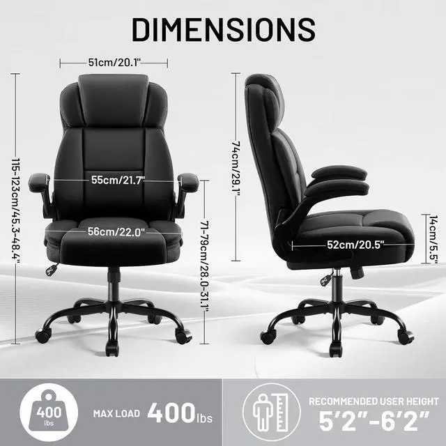 BUILT FOR RELIABILITY - Invest in a chair that endures. Constructed with a sturdy metal base and SGS-certified Class 4 gas cylinder, this executive chair confidently supports up to 300 lbs. The premium PU leather and high-resiliency foam ensure year-long durability and ease of cleaning.
