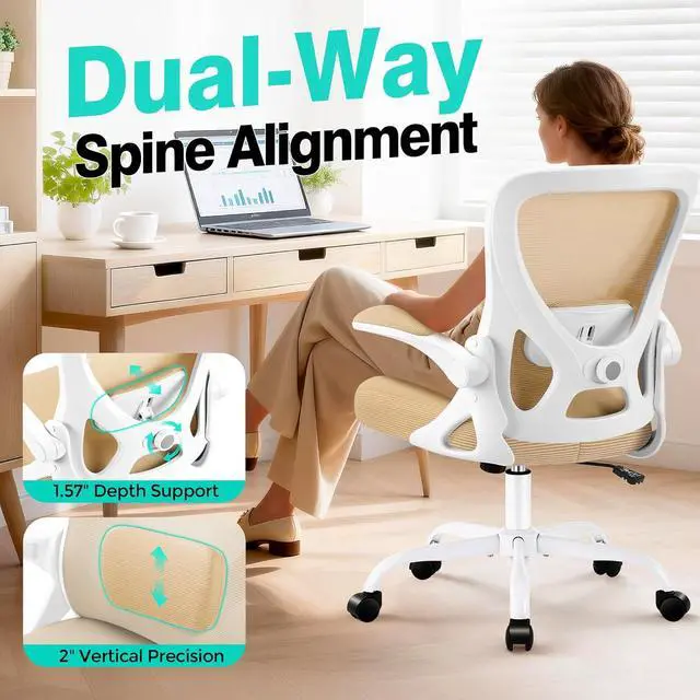 Office Chair - Ergonomic Breathable Mesh Desk Chair with Adjustable Lumbar Support and Flip-up Armrests - Executive High Back Rolling Swivel Comfortable Computer Gaming Chair for Home Office Khaki