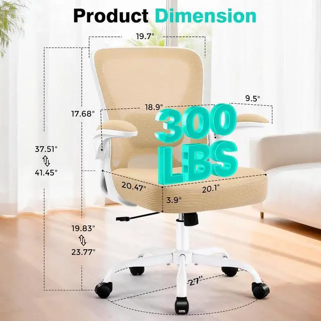 Silent & Heavy-Duty Base: This ergonomic chair is built with a reinforced five-point steel base, an SGS heavy-duty gas lift, and smooth wheels that ensure stability without damaging floors or carpets. Confidently supports up to 300 lbstrusted by professionals, gamers, and users of all sizes