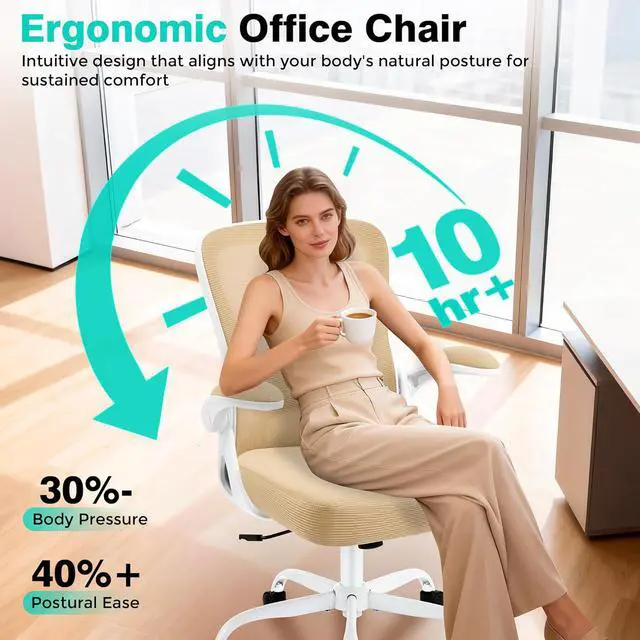 Pressure-Dispersing Comfort Engineering: Stay breathable and supported through long hours. The seat of our ergonomic office chair is crafted with 3.15-inch high-density foam and a waterfall edge to ease pressure on your hips and thighs, promoting healthy circulation. Meanwhile, the durable mesh back of this comfy desk chair enhances airflow to keep you dry and comfortable. Ideal for hot days, intense focus sessions, or anyone who struggles with stuffy, uncomfortable chairs