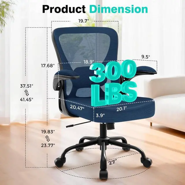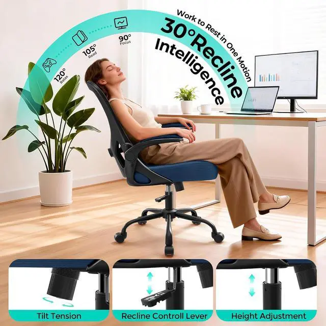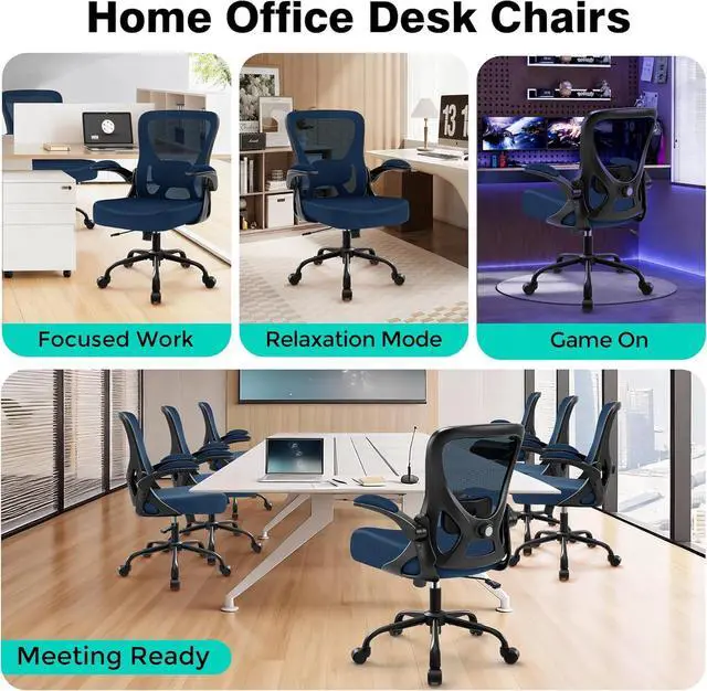 Office Chair - Ergonomic Breathable Mesh Desk Chair with Adjustable Lumbar Support and Flip-up Armrests - Executive High Back Rolling Swivel Comfortable Computer Gaming Chair for Home Office Navy