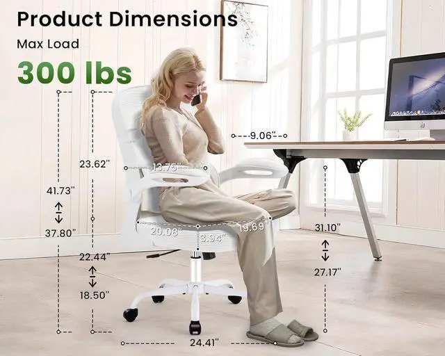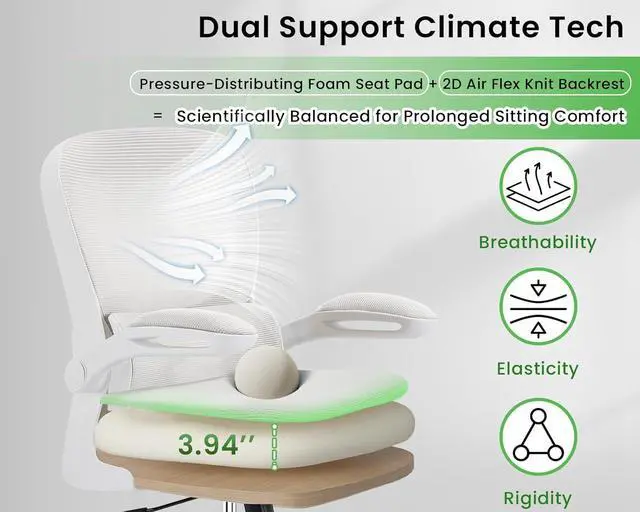 Breathable All-Day Comfort: Stay cool and focused thanks to advanced breathable mesh fabric promoting continuous airflow. Combined with a high-density, collapse-resistant foam seat cushion, this mesh office chair prevents overheating and discomfort, even during marathon workdays