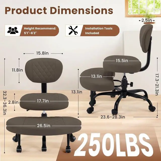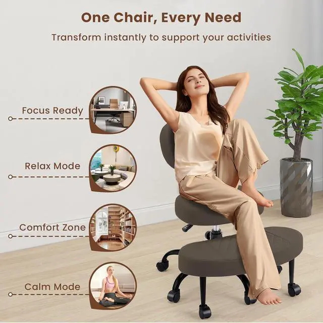 Multi-Position Freedom: 360° swivel seat and footrest enable effortless transitions between cross-legged, kneeling, and squatting postures.Perfect for yoga/meditation enthusiasts, ADHD adults and active sitters seeking ergonomic criss cross chair flexibility in home office/gaming/meditation spaces