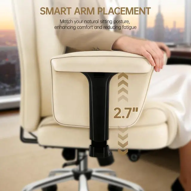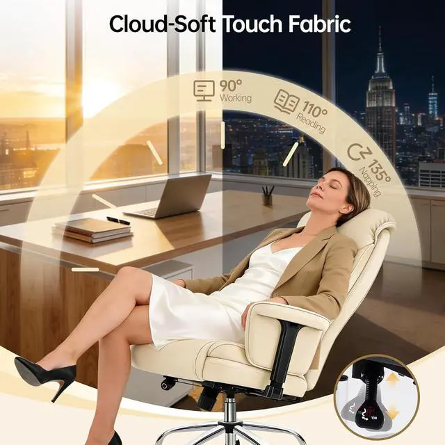 Multi-Angle Recline System: Move and recline with effortless control of our executive office chair. Switch between 3 locked positions (90° for focused tasks, 110° for relaxed reading, 135° for power naps) to match your mood and activity. The smooth 360° swivel and ultra-quiet dual-wheel casters provide seamless movement on hardwood, tile, or carpetideal for open-plan offices, home studios, or multitasking between desk setups