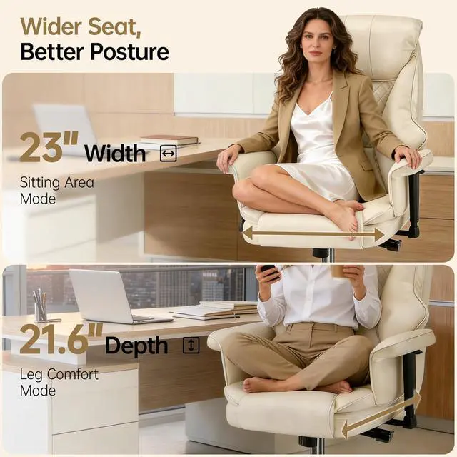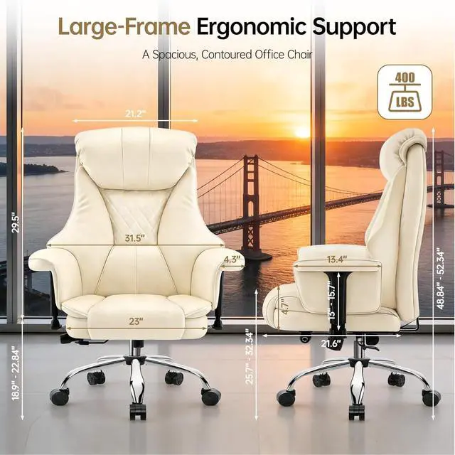 Heavy-Duty & Durability Construction: Our office chair is built to last with a reinforced metal base that supports up to 400 lbs, accommodating larger frames with confidence. The SGS-certified Class-3 gas lift offers a generous 100mm height range, while the waterproof, scratch-defence PU leather wipes clean in secondsmaking it a practical choice for busy professionals, shared workspaces, and homes with pets
