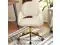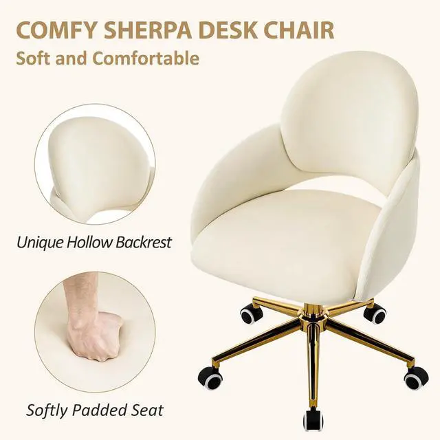 Furniliving Vanity Chair with Wheels, Cute Upholstered Office Chair with Hollow-Out Back, Height Adjustable Rockable Accent Chair with Gold Metal Base for Bedroom, Makeup Room, or Living Room (White)