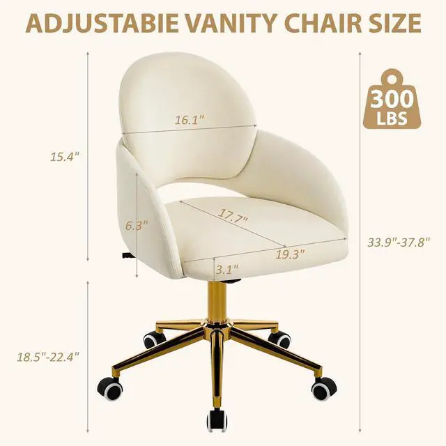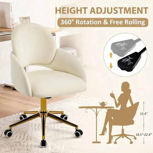 Modern DesignThe chic Luxurious hollow back design and soft velvet padded seat gives a charming and stylish look to decorate your desk. Ergonomic back support provide more comfort during living room or bedroom.The Contemporary office chair is perfect for a home office.