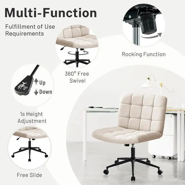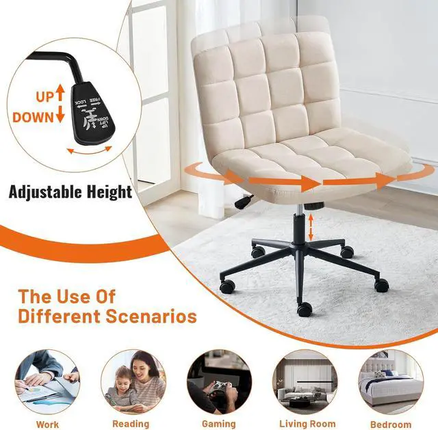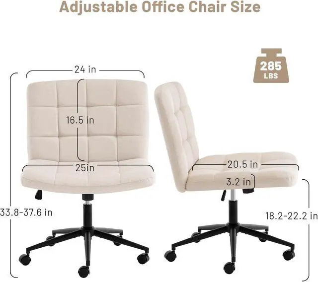 [Stable Frames]Armless office chair is designed with crossed metal base. Thereare 5 sturdy feets with wheels which can be easy to move anywhere in your house. It can bear up to 285LBS.