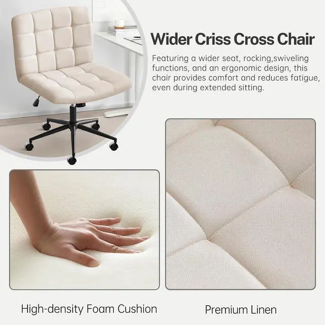 [Ergonomic Desk Chair]Minimalist and fashionable, without any unnecessary decoration, home office chair has high quality of linen and button-tufted cushions which will refine atmosphere around your home. The chair is perfect to be used as desk chair, office chair, makeup chair or dining chair for offices, bedrooms, living rooms, dressing tables, college dorm and studio apartment.