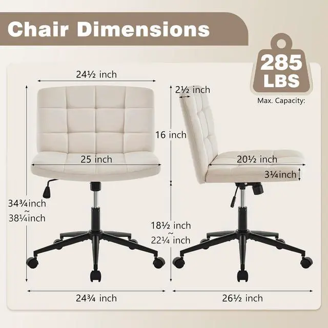 [Stable Frames]Armless office chair is designed with crossed metal base. Thereare 5 sturdy feets with wheels which can be easy to move anywhere in your house. It can bear up to 285LBS.