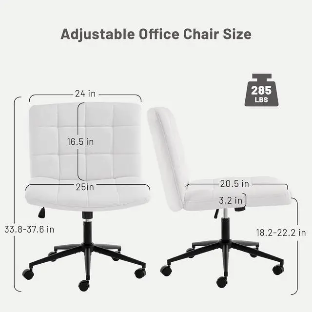 • [Stable Frames]Armless office chair is designed with crossed metal base. Thereare 5 sturdy feets with wheels which can be easy to move anywhere in your house. It can bear up to 285LBS.