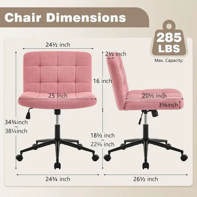 [Stable Frames]Armless office chair is designed with crossed metal base. Thereare 5 sturdy feets with wheels which can be easy to move anywhere in your house. It can bear up to 285LBS.