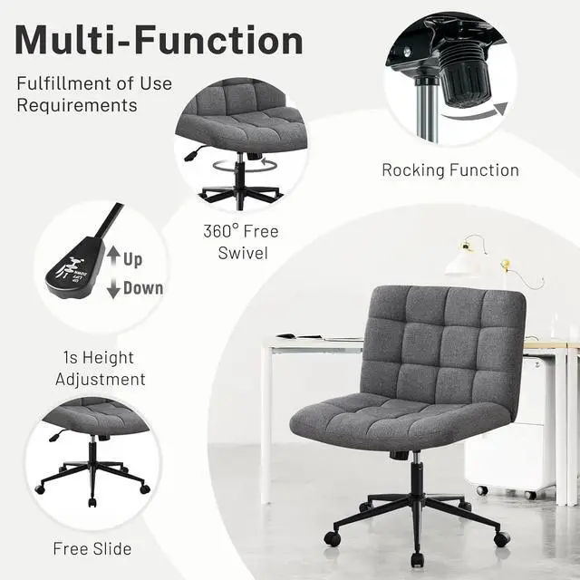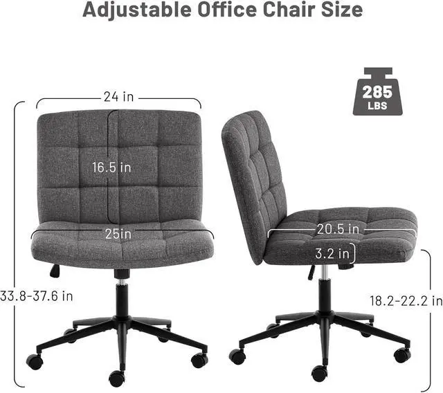 [Stable Frames]Armless office chair is designed with crossed metal base. Thereare 5 sturdy feets with wheels which can be easy to move anywhere in your house. It can bear up to 285LBS.