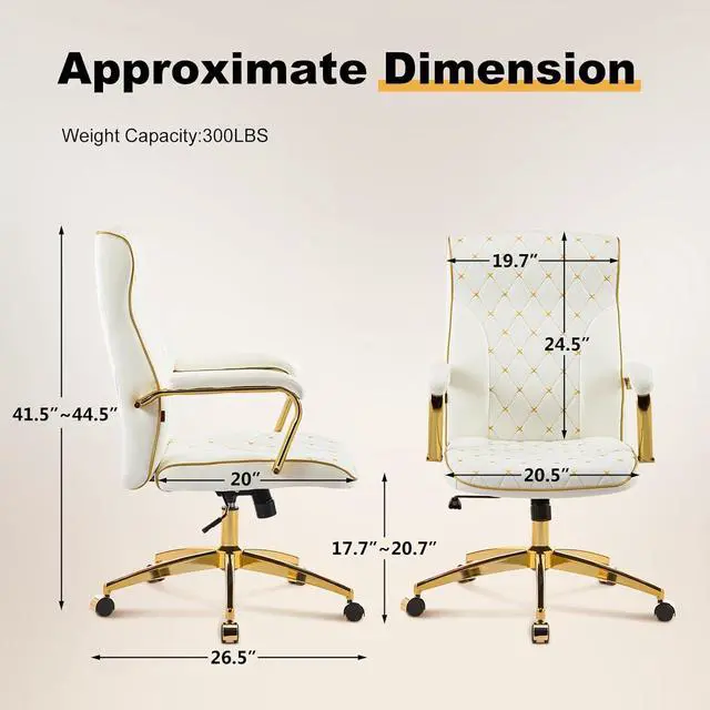 Rolling & Adjustable : The home office chair for features a 360° swivel and an adjustable seat height ranging from 17.7" to 20.7", hold 300lbs. It also offers rocking function with 20° tilt range, Suitable for consumers of different heights and usage habits.