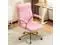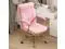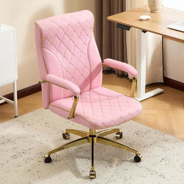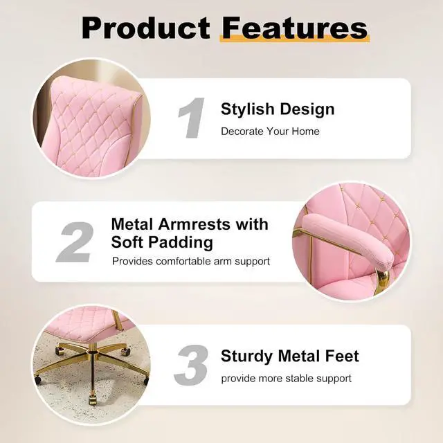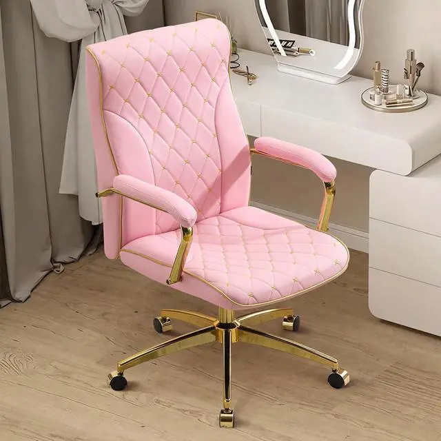 Furniliving Pink and Gold Office Chair, Leather Office Chairs, Adjustable Vanity Chair with Golden Legs and Padded Armrest, Modern Upholstered Computer Chair with Wheels,Pink