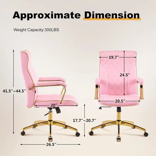 Rolling & Adjustable : The home office chair for features a 360° swivel and an adjustable seat height ranging from 17.7" to 20.7", hold 300lbs. It also offers rocking function with 20° tilt range, Suitable for consumers of different heights and usage habits.