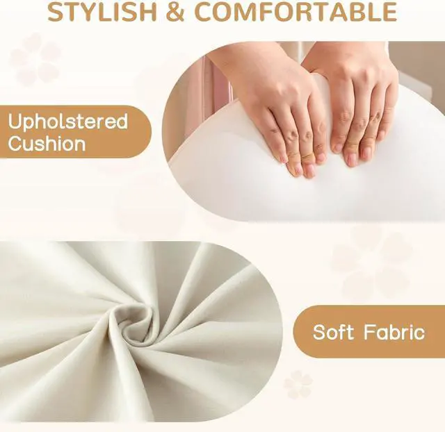 Unique Vanity Desk Chair: The backrest of this desk chair features a unique flower shape design, covered with soft boucle fabric and thick fluffy cushions that provide ultimate comfort while adding a touch of elegance and adorable to your room.
