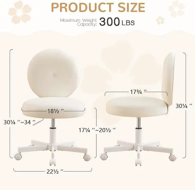 Smooth and Flexible: Our desk chair features a modern armless design with silent 360° wheels at the bottom that can slide smoothly under the table, saving you more space. Adjustable height design, equipped with SGS-certified lift, perfectly suitable for any room desk, allowing you to find your own height whether you are working, studying, or doing makeup.