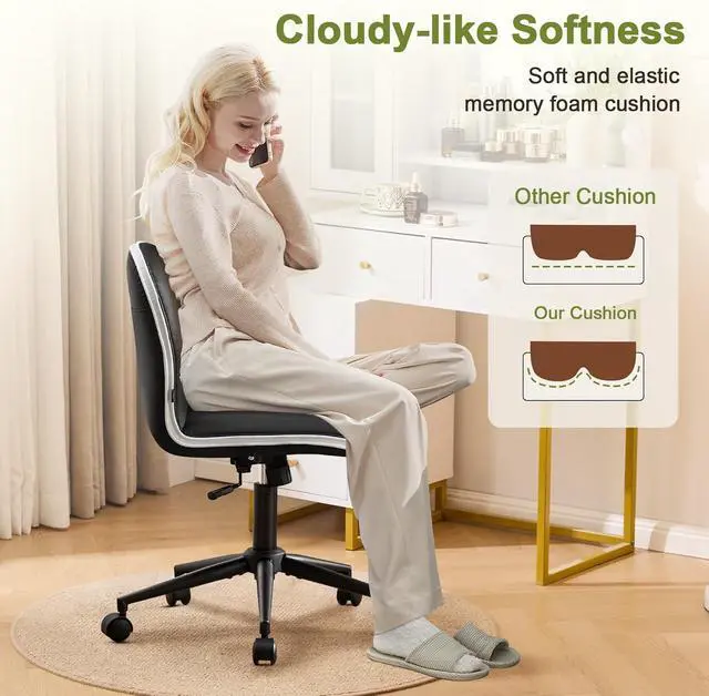[Supportive Comfort] - Sink into plush, high-resilience foam cushions wrapped in premium, easy-clean PU leather (with chic contrast stitching), wear-resistant and waterproof. Feel supported and refreshed, even during marathon work sessions or long hours at your vanity.
