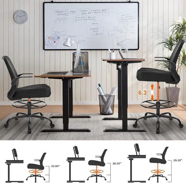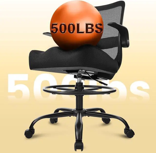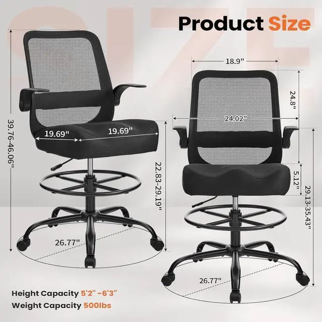 & Designed as a drafting chair for standing desk use, this 500 lbs capacity tall office chair delivers stable, confident support at elevated heights. Ideal for drafting, drawing, and focused desk work in home offices or creative studios.
