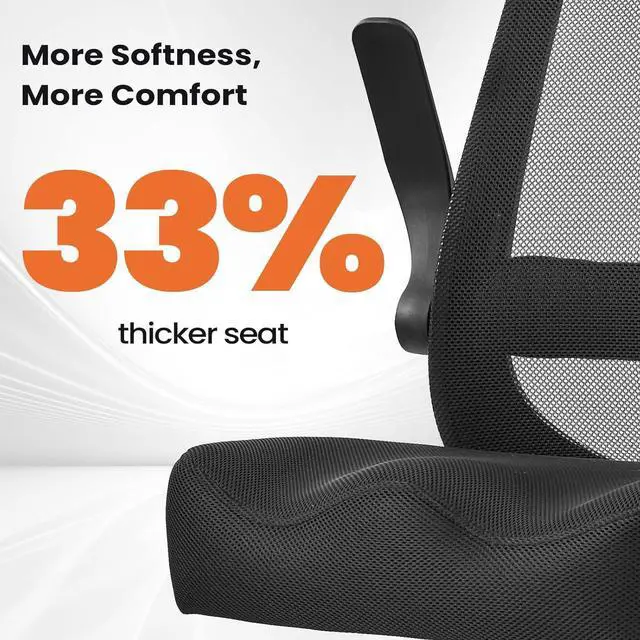 & - The mesh office chair back promotes airflow to keep you cool during long work sessions. Flip-up armrests allow the chair to slide easily under desks, making it perfect for compact home offices and drafting spaces.