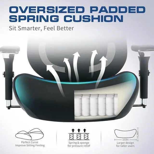 - :Long sitting hurts? This plus-size wide-seat office chair features a spacious U-shaped cushion (19.7"D x 23.6"W, 6.7" thick) that fits your body's natural curves. High-quality springs inside help distribute weight evenly, relieving pressure from long hours of sitting. Whether you're in meetings or focused on tasks, this comfortable office chair keeps you supported and relaxed all day. It's more than a chairit's comfort you can count on.