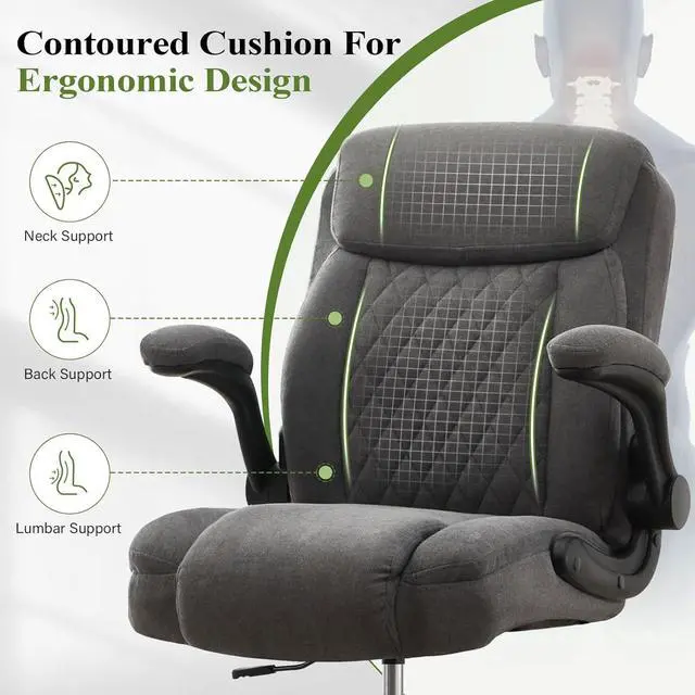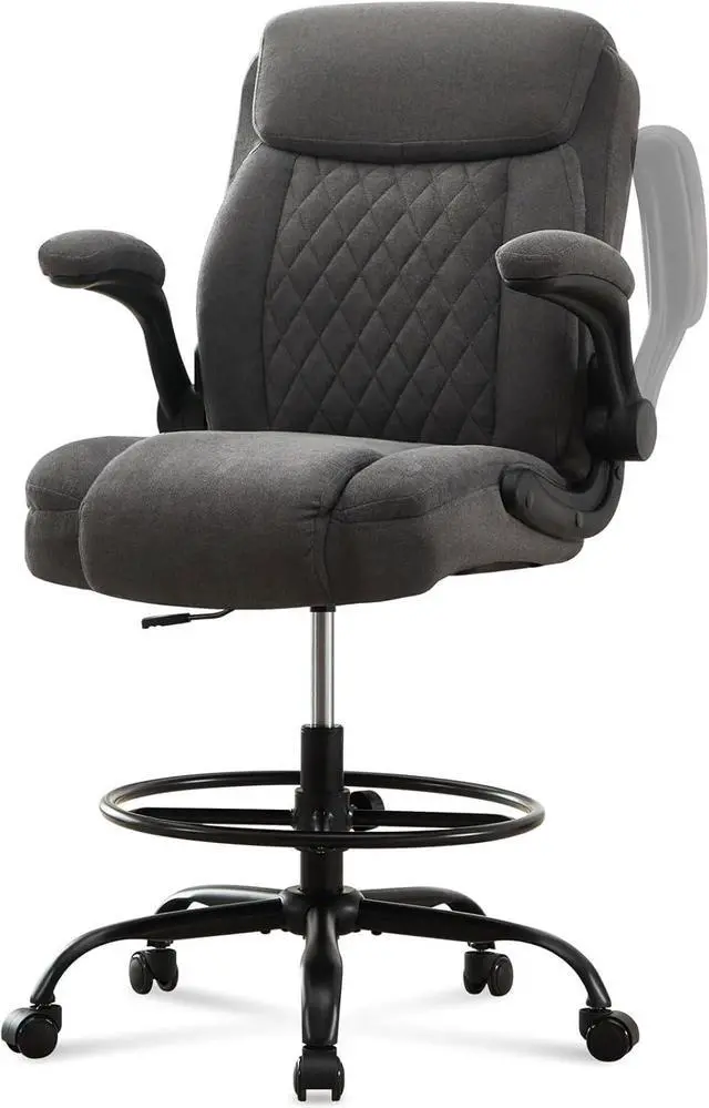 Drafting Chair Tall Office Chair for Standing Desk, Ergonomic Tall Desk Chair with Adjustable Foot Ring, Flip-Up Armrests, Lumbar Support, Comfortable Fabric Seat Ideal for Home and Office Use
