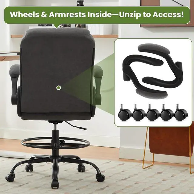 Enjoy all-day comfort with this tall office chair for standing desk. The plush fabric seat provides lasting support, while the lumbar support helps maintain proper posture and reduces strain. Whether youre at home or in the office, this drafting chair tall office chair for standing desk is designed to keep you comfortable and productive.