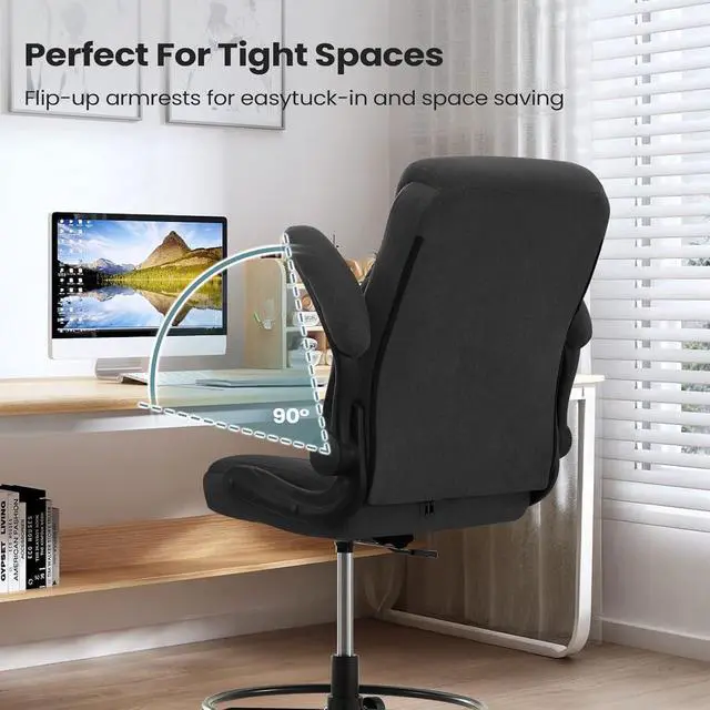 - & Designed with flip-up armrests, this counter height office chair adapts to your workspace needs. Easily slide it under tall desks to save space or flip the arms up to move freely when sketching, typing, or collaborating. Perfect for home offices, studios, or shared work environments where flexibility and efficient use of space are essential.