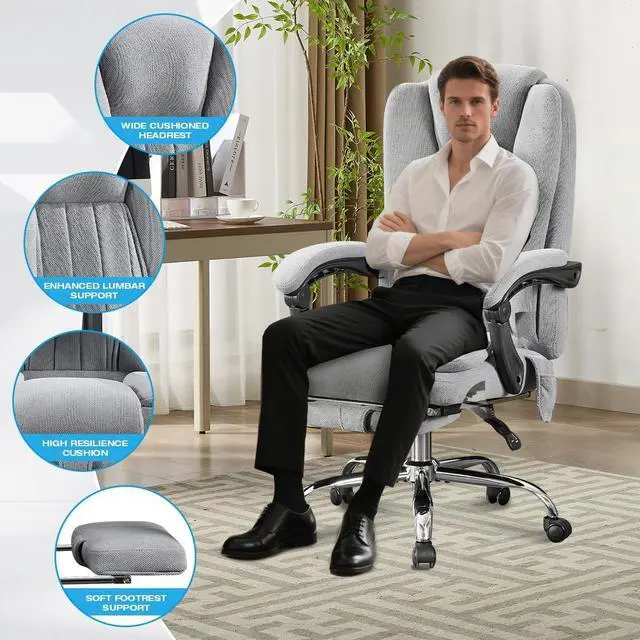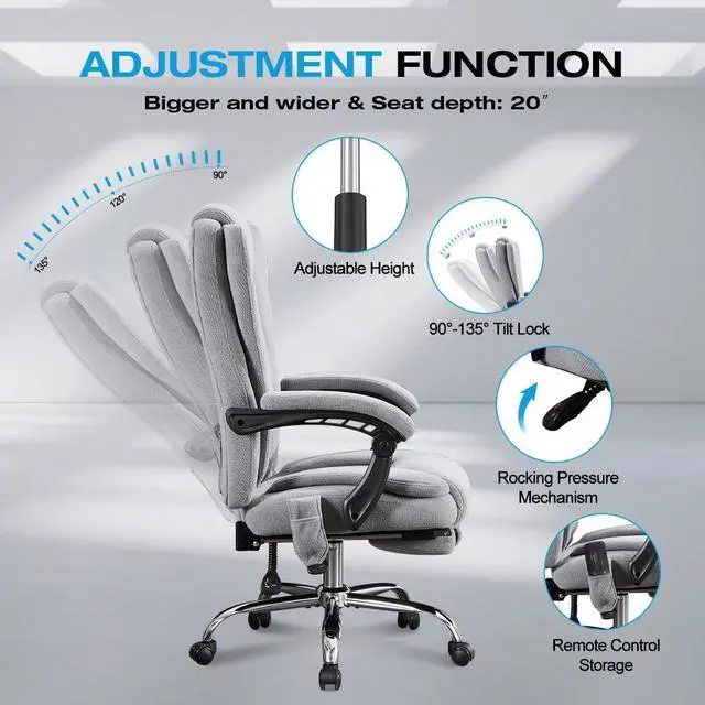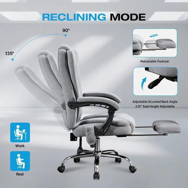 & : Effortlessly transition from work to relaxation with our reclining office chair with footrest. Tilt back up to 135° for reading, gaming, or a quick nap, and extend the adjustable footrest to support your legs. Whether you need a reclining office chair with footrest, this recliner office chair adapts perfectly to your office, bedroom, study, or game room.