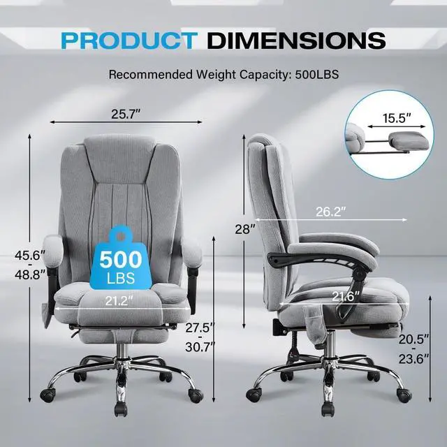 Massage Office Chair with Foot Rest for Heavy People 500lbs Big and Tall Office Chairs with 6 Vibration Points and Heating Function for 8 Hours daliy Work,Ergonomic Executive Desk Chair