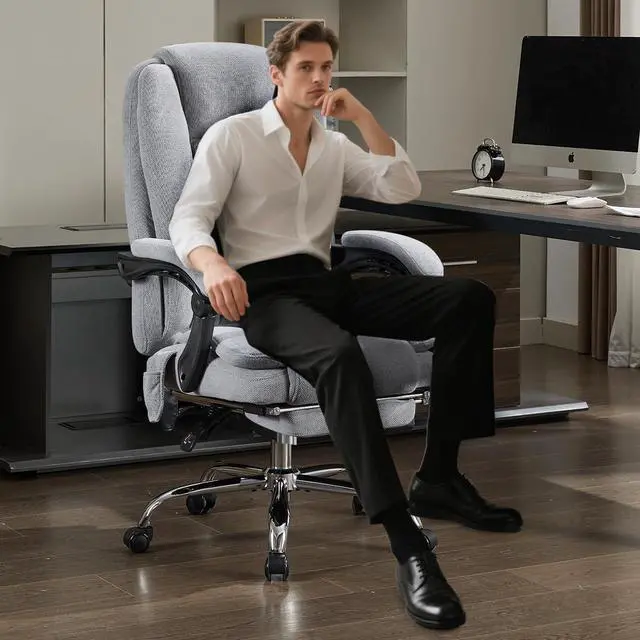 & : Built on a sturdy metal frame and SGS-certified gas lift, this office chair big and tall supports up to 500 lbs, ensuring unmatched stability. The silent wheels glide smoothly across floors, while the heavy-duty base guarantees long-lasting durability. Ideal as a big and tall office chair or a leather office chair, it combines strength and comfort for users of all sizes.