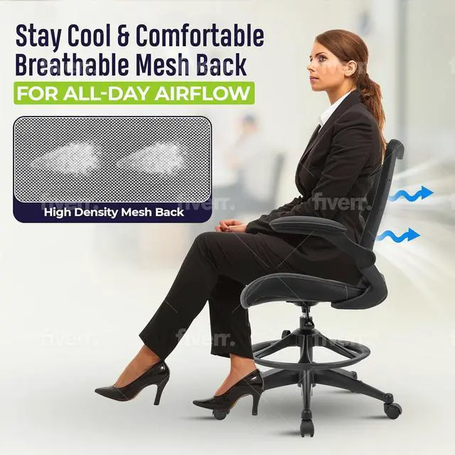 Highly Breathable: Stay cool and comfy during extended work sessions. Our ergonomic drafting chairs mesh back ensures optimal airflow while the PU seat is a breeze to clean and maintain