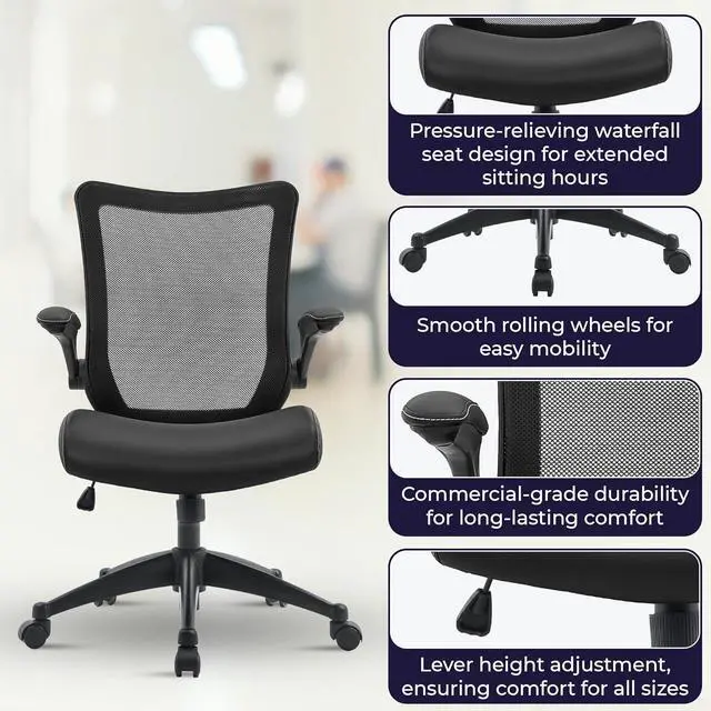Highly Breathable: Stay cool and comfy during extended work sessions. Our ergonomic drafting chairs mesh back ensures optimal airflow while the PU seat is a breeze to clean and maintain