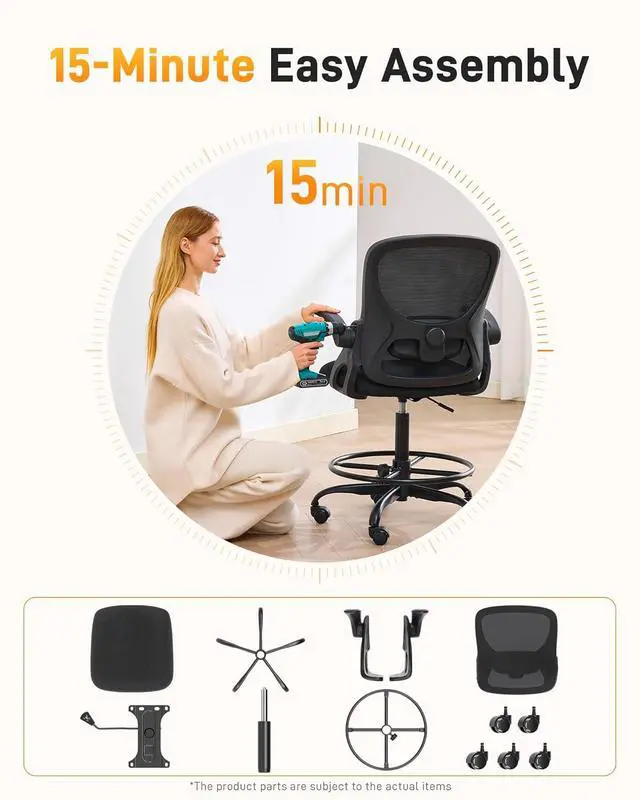 15-Min Quick Setup & Ultra-Breathable Get to work faster with our easy 15-minute assembly and clear instructions. The premium 3D mesh back and high-density foam cushion promote superior airflow and prevent heat buildup, keeping you cool and comfortable all day long.