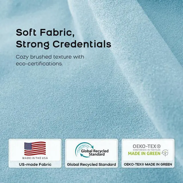 Soft US-Made Fabric: 400g brushed upholstery fabric feels cozy and skin-friendly, with a soft matte look that blends into real homes. GRS and OEKO-TEX MADE IN GREEN certifications add peace of mind for everyday use.