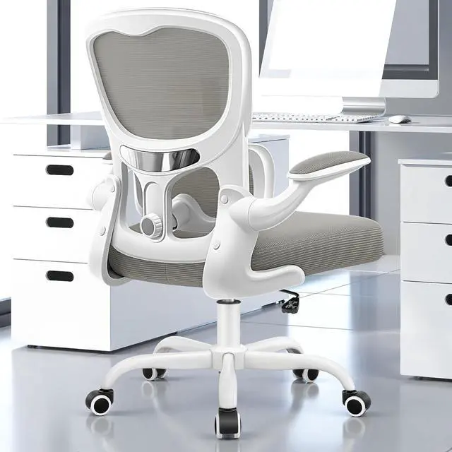 90° Flip-Up Armrests for Space SavingSoft padded armrests reduce pressure on elbows and forearms. The 90° flip-up design lets you tuck this office desk chair under the table easily for space saving. Ideal for home, office, meeting rooms and other work settings