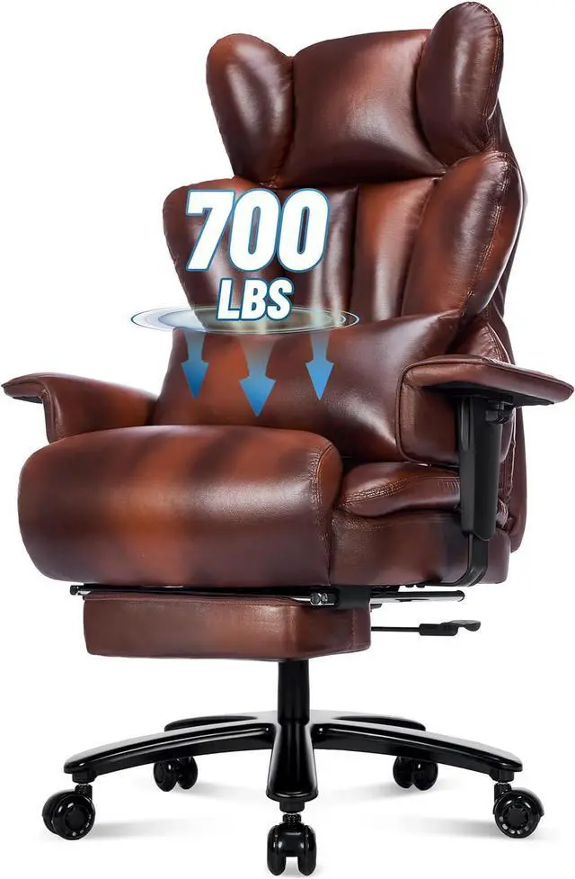 - : The BLISNEST big and tall office chair is designed to support up to 700 lbs, making it the perfect choice for heavy-duty use. Built with a sturdy metal base and reinforced frame, this chair offers the durability and stability needed for larger individuals, while its sleek PU leather finish adds a touch of style to your home office.
