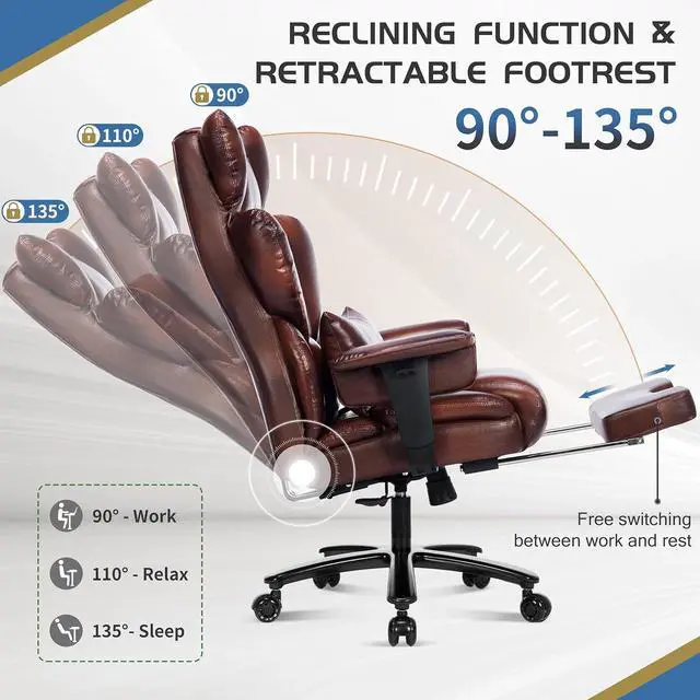 : This ergonomic executive office chair features a thick, comfortable seat cushion, soft padded armrests, a tall backrest, and a adjustable lumbar pillow for added support. The retractable footrest allows you to fully relax during long hours of work, study, or gaming, ensuring an all-around comfortable experience.