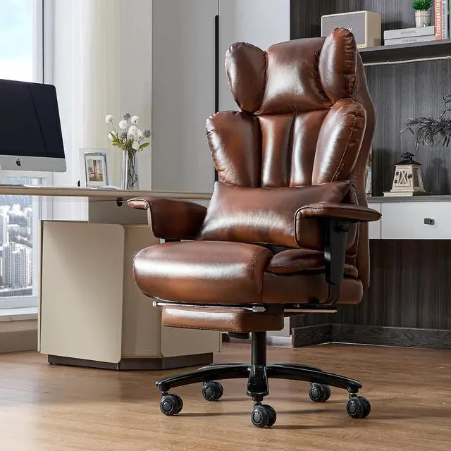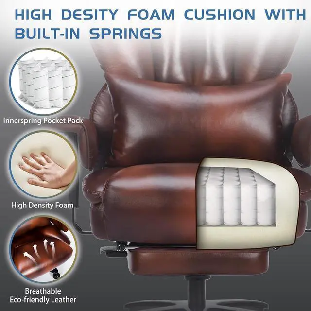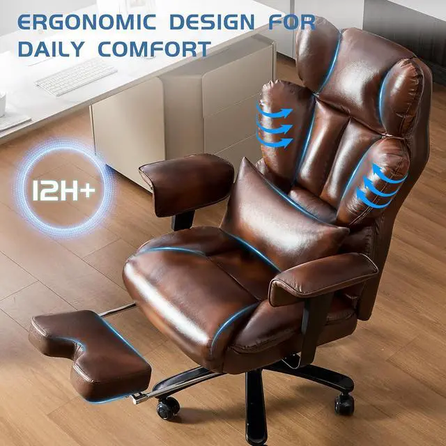 700lbs Big and Tall Office Chair with Footrest&Adjustable Lumbar Pillow,Large Heavy Duty Executive Office Chair-Wide Seat,Ergonomic High Back Computer Chairs for Heavy People,Dual Rubber Wheels,Brown