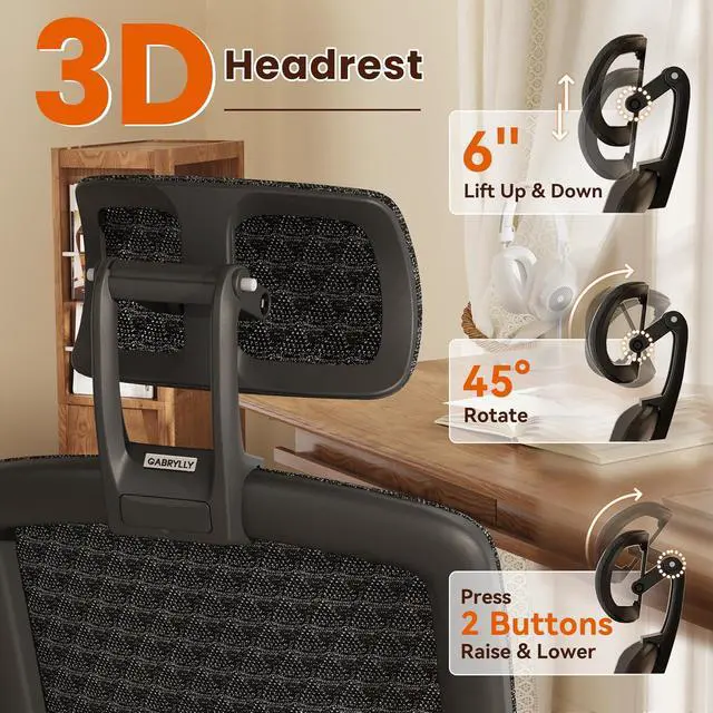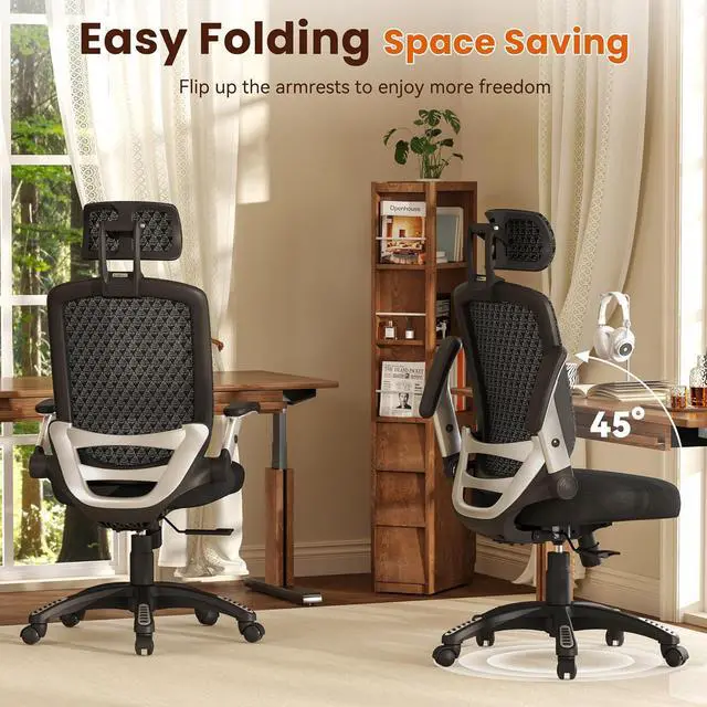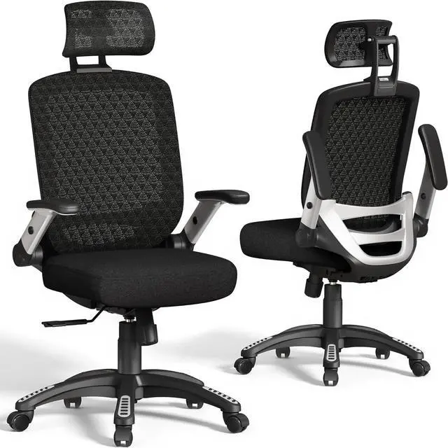 GABRYLLY Ergonomic Office Chair, High Back Home Desk Chair with Flip-Up Arms, 3D Headrest, Thick Sponge Sea &90-120° Recline, Big and Tall Mesh Executive Chairs for Man Woman, Midnight-Cloud