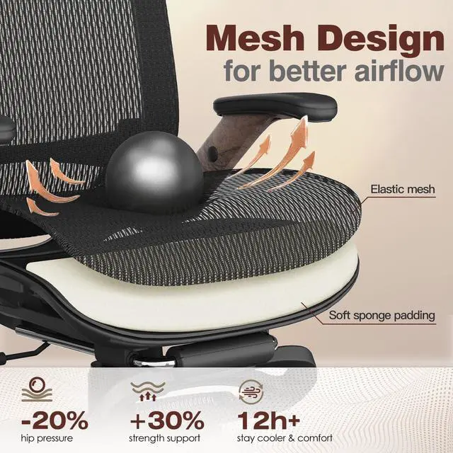 3D Armrest & HeadrestThe ergonomic office chair features 3-way adjustable armrests (up/down, front/back, in/out) to perfectly support your arms, reducing shoulder and wrist strain during typing, reading, or gaming. The large mesh headrest offers 3 adjustment of height, angle & bracket for personalized neck support. Designed for all-day comfort, the armrest and headrest enhance productivity while maintaining proper posture.