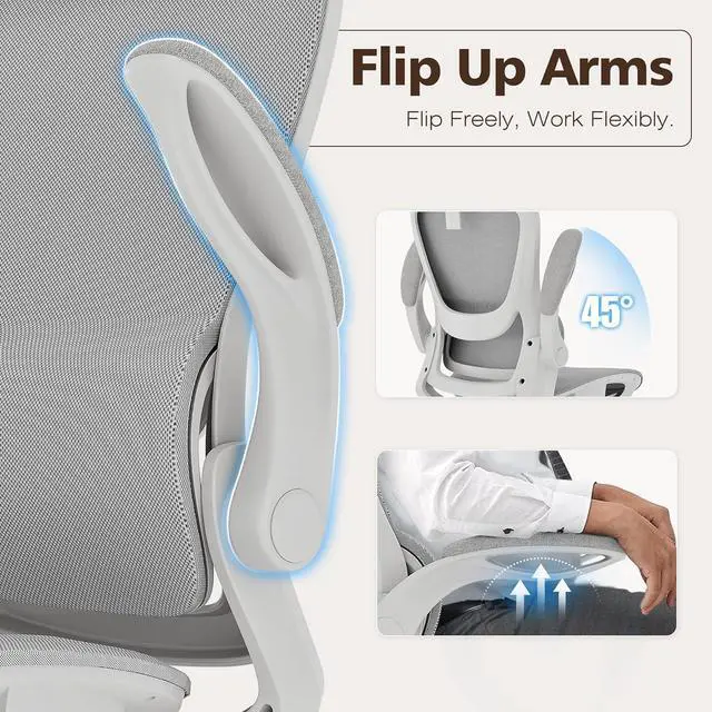 GABRYLLY Ergonomic Mesh Office Chair- White Desk Chair, Flip-Up Armrest, Adjustable Headrest, Tilting with Soft Seat and PU Wheel, Elite Home Desk Chair for Work, Study, Gaming (GY1108)