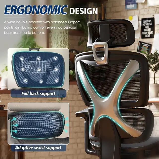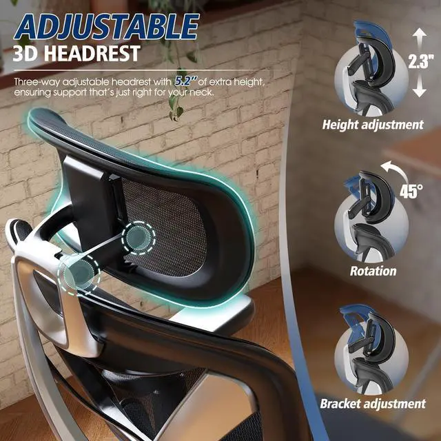 Ergonomic Lumbar Support - Double back design brings compre lumbar support and fits body curve. All in one. The 350LBS GABRYLLY office chair offers 3D headrst, 215° rotate armrest, 90-120° Tilt-back and stable construction, meeting ergonomic design to release fatigue.
