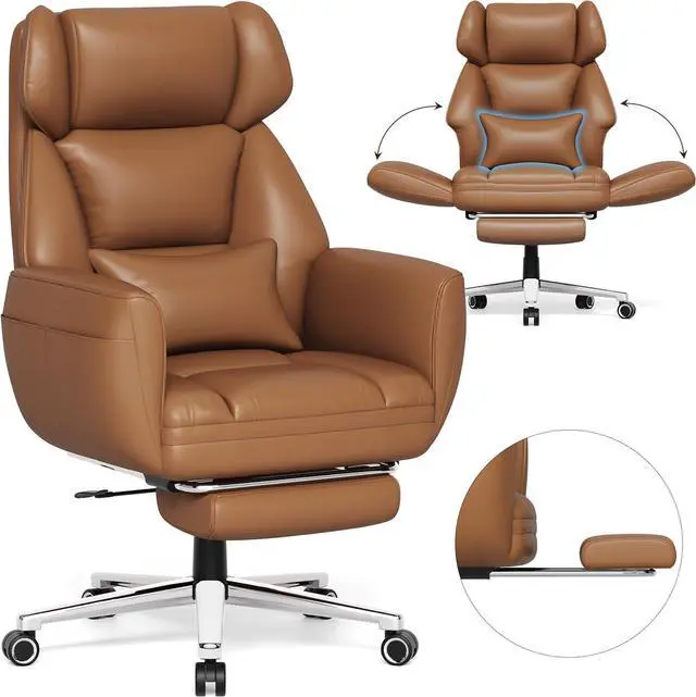 6. Wraparound Ergonomic Comfort - Stylish leather chair offers 360-degree wraparound support with a contoured backrest, adjustable armrests, a retractable footrest, premium Class-4 gas lift and 27.5 mental chair base. Youll feel fully cradled as you relax, ensuring both comfort and stability while sitting.